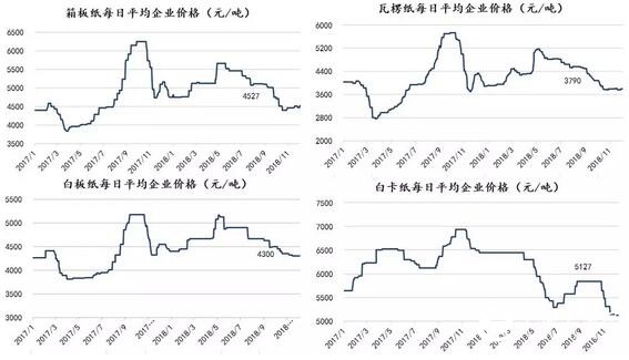 箱板/瓦楞/白板/白卡紙價格走勢: