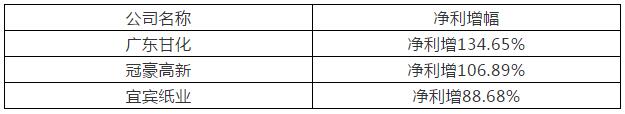 其他10家凈利潤在億元以上的企業還包括華泰股份(7.19億元)、中順潔柔(4.07億元)、岳陽林紙(3.66億元)、景興紙業(3.35億元)、仙鶴股份(2.92億元)、博匯紙業(2.56億元)、榮晟環保(2.08億元)、宜賓紙業(1.74億元)、青山紙業(1.55億元)、冠豪高新(1.09億元)。凈利潤不足億元的有廣東甘化(0.98億元)、京華激光(0.96億元)等9家。