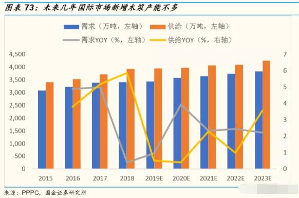 綜合來看,未來全球木漿新增產能不多,且一定程度上需求增長快于產能增長。因此,中長期看,木漿價格具備溫性上漲基礎。