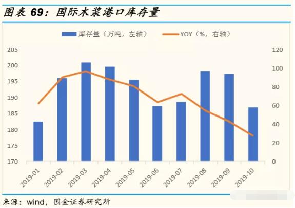 受益于此,國際漿價于今年9開始企穩,內盤漿價也基本在11月內止住下跌趨勢,短期內木漿價格具備一定支撐,繼續下降概率較小。