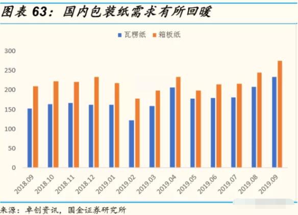 而從需求角度來看,今年9月,國內箱板紙和瓦楞紙的需求,同比分別增加81萬噸和66萬噸。