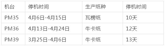 除了上文提及的晨鳴集團、華泰紙業4月將停機外,早前天津玖龍、泉州玖龍、安徽山鷹、華南山鷹均發布了停機檢修通知。