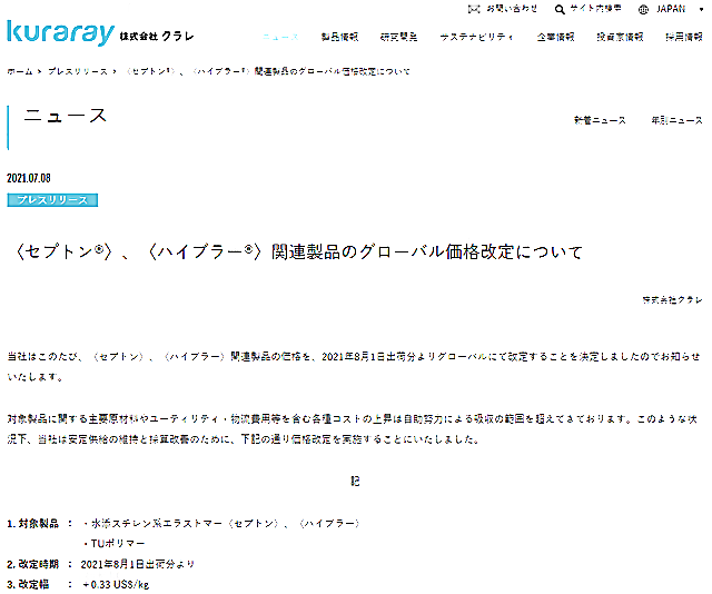 【可樂麗氫化苯乙烯類彈性體和TU聚合物漲價】8月1日起,在全球范圍內上調公司所有等級的SEPTON™、HYBRAR™氫化苯乙烯類彈性體和TU聚合物的售價,漲幅為0.33美元/磅(約2138元/噸)。