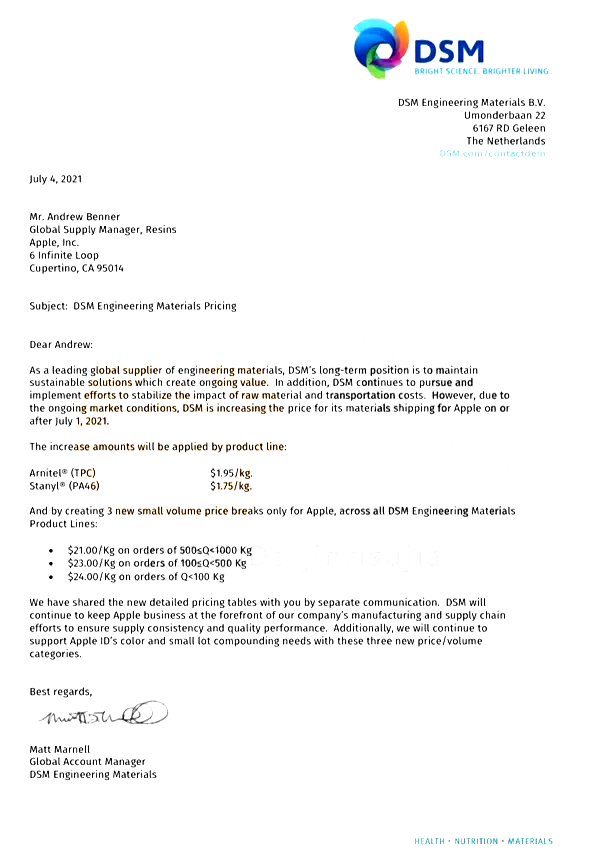 【帝斯曼上調特種尼龍彈性體價格】7月7日,帝斯曼宣布將對7月1日上調公司的部分產品價格,漲價產品及漲幅如下:Arnitel®TPC上調1.95美元/千克(約12634元/噸);Stanyl®PA46上調1.75美元/千克(約11338元/噸)。
