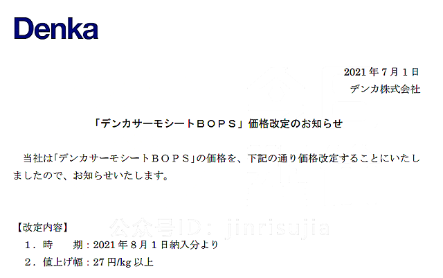 【DENKA聚苯乙烯漲價】因聚苯乙烯等原材料價格上漲導致成本增加,公司決定8月1日起對部分聚苯乙烯產品價格上調27日元/千克(約1572元/噸)。