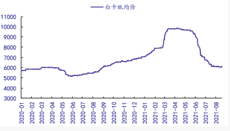 張星告訴記者,在大宗商品保供穩(wěn)價政策的背景下,紙漿行業(yè)的供需格局有了一定的變化,經(jīng)過2021年上半年上漲后,行業(yè)出現(xiàn)了一定的供需矛盾,導(dǎo)致下半年白卡紙的價格呈現(xiàn)下降趨勢。